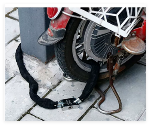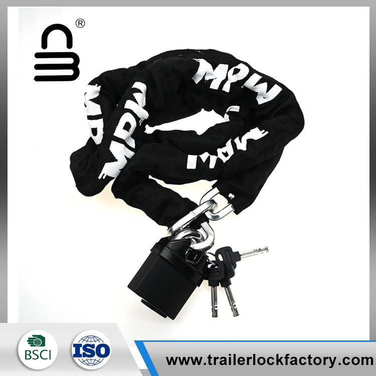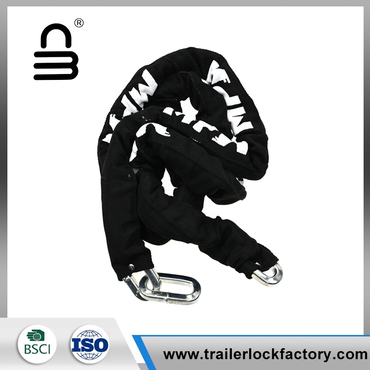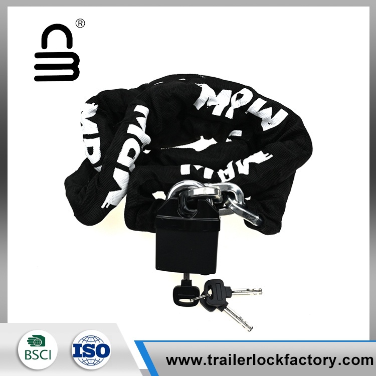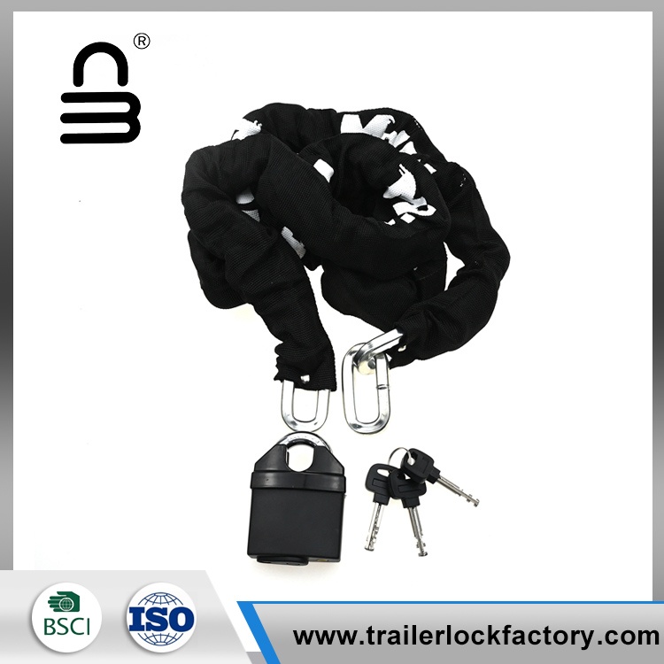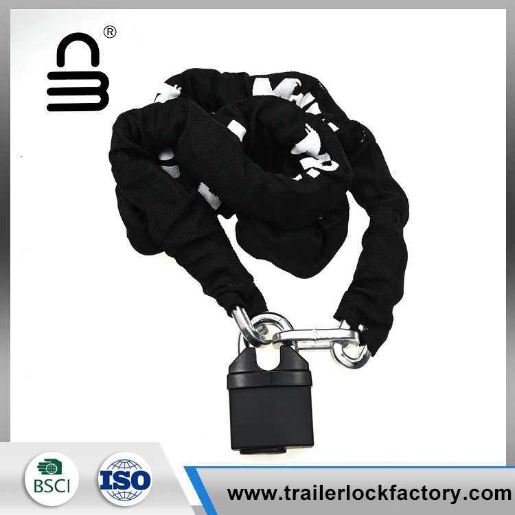 لمنع الخدوش وتعزيز طول العمر ، يتم تغطية قفل سلسلة الدراجات بأكمام قماش قاسية ومقاومة للارتداء. لمزيد من الأمان ، تم تجهيز قفل سلسلة الدراجات بآلية قفل على شكل حرف U ، والمعروفة أيضًا باسم خطافات U-Lock ، والتي توفر طريقة موثوقة وآمنة للتثبيت.